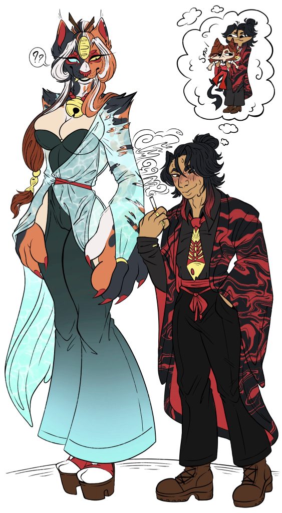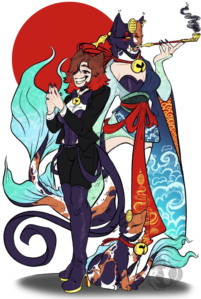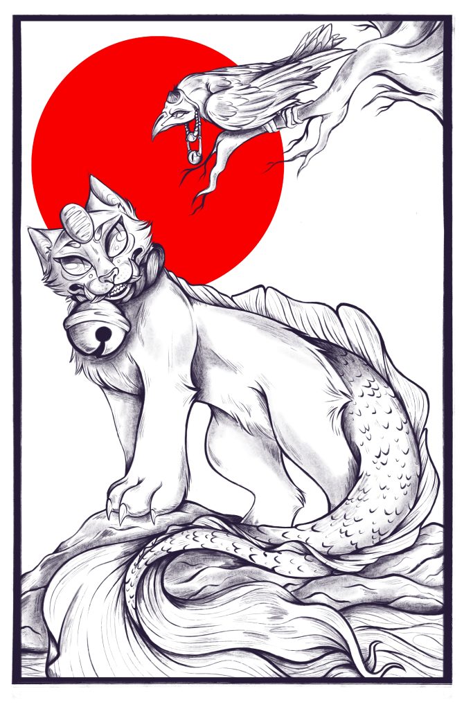 Description: This is a piece I made one day to represents the new greeting of another Yokai than Keiko. Keiko is meeting something like her a creature with there own powers and abilities and yet they compliment each other of the skies and waters. They both also play the important rolls in the stories they are in and with the humans they are alined too.